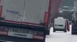 #Bursa'da seyir halindeki bir tırın yolda yan şekilde ilerlemesi trafikte tehlikeli anlara neden olurken, sürücülere z...