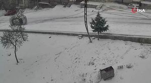 #Gaziantep’te kar yağışı nedeniyle kayganlaşan yolda sürücüsünün direksiyon hakimiyetini kaybettiği araç, kaldırıma ça...