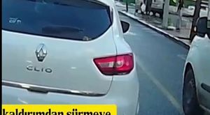 Trafik magandası kaldırıma çıkıp ilerledi!