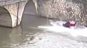 Önce araca çarptı sonra nehre uçtu!