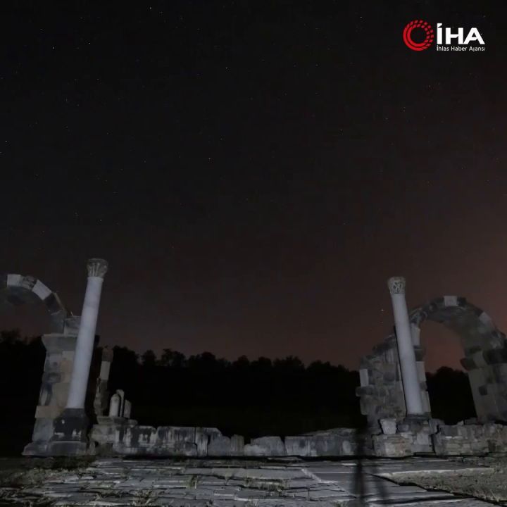Tüm dünyanın merakla beklediği perseid meteor yağmuru, Milattan önce 3. yüzyılda kurulan Muğla’nın Yatağan ilçesindeki Stratonikeia antik kentinde görüntülendi.