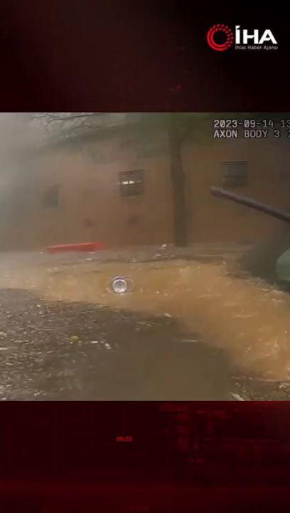 Atlanta kentindeki şiddetli yağış, caddede su baskınına neden olurken, polis ekipleri suya gömülen aracı fark etti. Beline kadar gelen suya giren polis, sürücüyü araç camını kırarak kurtardı.