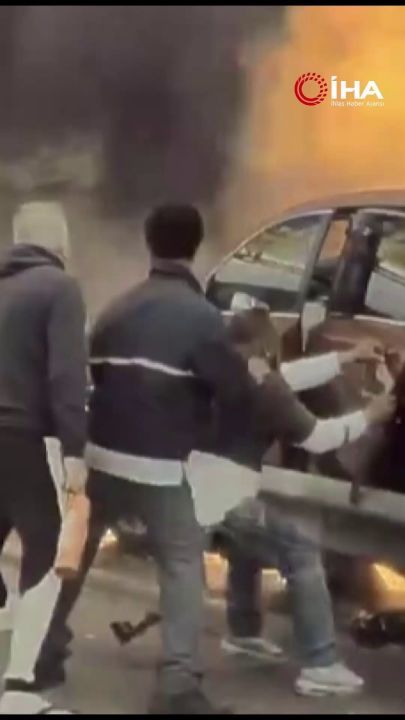 Görüntülerde bariyere çarpıp kaza yapan bir aracın alev aldığı görülüyor. Sağ tarafı alevler içinde kalan araçtaki sürücü bariyer nedeniyle kapısını açamayınca çevredekiler yardımına koştu. En az 5 kişi kapıyı zorlayarak açmayı denerken, bir ulaştırma çalışanı aracın camını çekiçle kırmayı başardı. Sürücü camın kırılmasının ardından hızlı bir şekilde araçtan çıkarıldı. Sürücünün kurtarılmasından kısa bir süre sonra aracın tamamı alevlere teslim oldu.