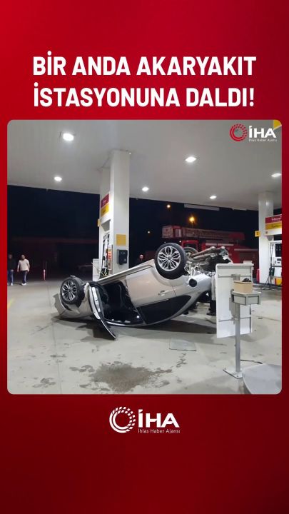 Kayseri'nin Melikgazi ilçesinde sol şeritte seyir halindeyken bir anda akaryakıt istasyonuna girmeye çalışan sürücü, başka bir araca çarptıktan sonra akaryakıt istasyonuna girerek takla attı. O anlar güvenlik kamerasına yansıdı.