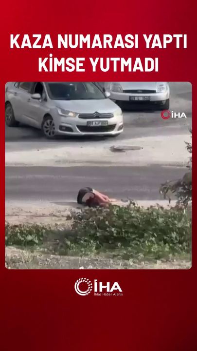 Aydın'ın #Kuşadası ilçesinde, bir erkekle tartışıyor gibi yapan genç kadın, karayoluna çıkarak seyir halindeki bir aracın önüne geçip kendisine çarpmış numarası yaparak yerde yuvarlandı. Hareketsiz şekilde yatan kadının numarasını çevredekiler yutmayınca ayağa kalktı.