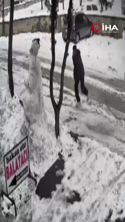#Elazığ'da bir vatandaş aracından indi kardan adamı yıkıp gitti