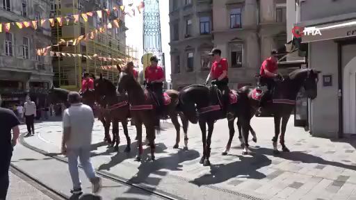Taksim'de devriye gezen atlı polisler yoğun ilgi gördü. Vatandaşlar ve turistler atlı polislerle bol bol fotoğraf çektirdi.