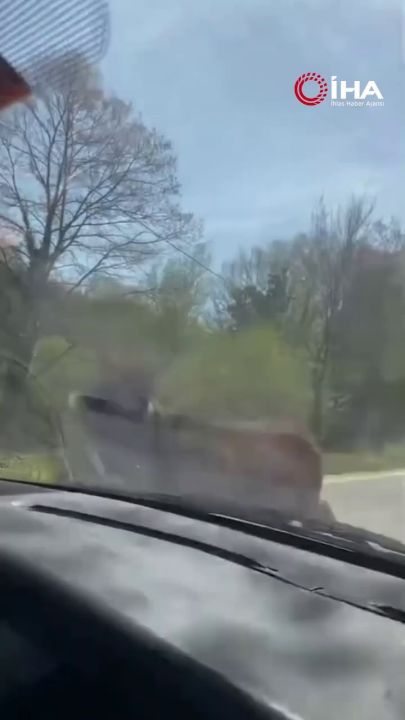 Sakarya'da başıboş eşek, yoldan geçen vatandaşlara zor anlar yaşattı.