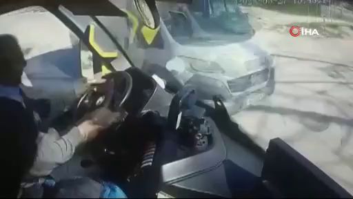 Bursa'da yolcu dolu halk otobüsü cadde üzerinde seyir halindeyken tali yoldan aniden çıkan servis aracının çarpmasıyla savruldu. Yolcuların panik anları güvenlik kamerasına yansırken, kazada can kaybı meydana gelmedi.