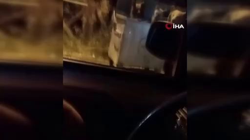 Uludağ’da karnı acıkınca ailesiyle birlikte ormandan Sarıalan’daki yerleşim yerine gelen ayı ve ailesi kendisini izlemek için yanında duran vatandaşın aracını fark edince önünü kesip kaputa dayandı.