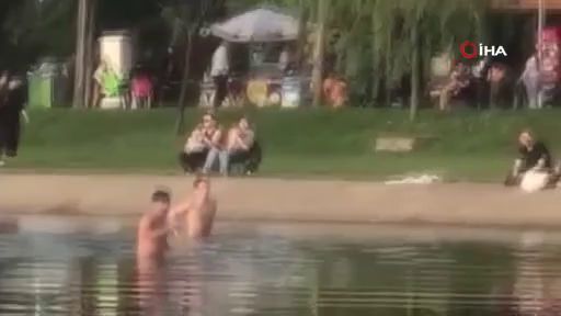 Bursa'da hava sıcaklığının 20 derecenin üzerine çıkmasıyla serinlemek isteyen çocuklar çareyi süs havuzunda buldu. Çocukların süs havuzunda yüzdüğü anlar çevredeki vatandaşların amatör kamerasına yansıdı.
