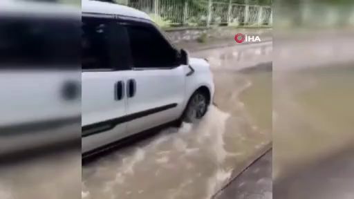 Bursa'nın İnegöl ilçesinde şiddetli yağmurun etkisiyle sokak ve caddeler göle döndü. Bisikletiyle yolda ilerlemeye çalışan bir vatandaş ise derinliği kestiremeyince suya battı. O anlar, kameraya saniye saniye yansıdı.