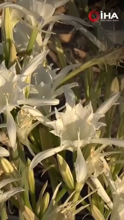 Akdeniz sahillerinde, nesli tükenme tehlikesi altında olduğu için koruma altında bulunan ve koparmanın 244 bin 315 TL cezası olan kum zambakları, çiçek açtı.