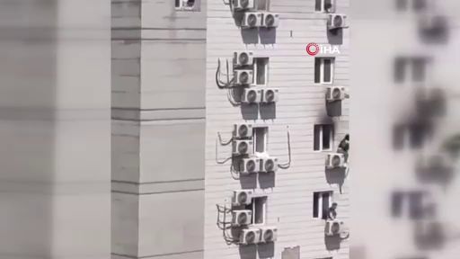 Çin'in başkenti Pekin'de bulunan Changfeng Hastanesinde çıkan yangında 21 kişi hayatını kaybetti. Bir kişi, camdan sarkıttığı çarşafla kendini aşağıya bıraktı.