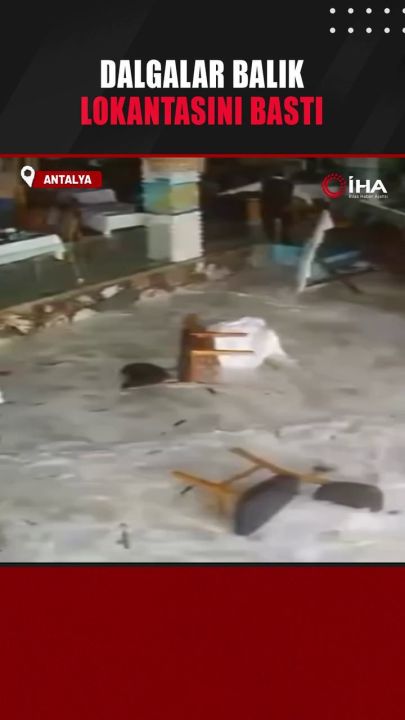 #Antalya'nın Alanya ilçesinde dalgaların yükselmesiyle birlikte sahilde bulunan bir balık lokantasını su bastı.