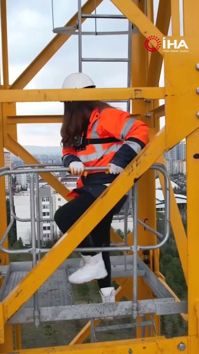 Annesinin tavsiyesiyle 20 yaşında kule vinç operatörü olan Mera Coşkun, metrelerce yükseklikte çalışarak, ekmeğini gökyüzünde kazanıyor.
