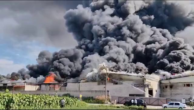 Bursa'nın İnegöl ilçesinde iplik ürettiği belirtilen fabrikada yangın çıktı. Fabrikadan yükselen yoğun duman gökyüzünü kaplarken ilçenin de birçok yerinden görüldü.