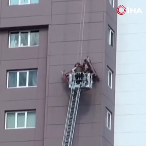 İstanbul Eyüpsultan'da 32 katlı binanın 14. katında tadilat yapan 2 işçi, iskelenin devrilmesiyle mahsur kaldı. İşçiler itfaiye ekiplerince kurtarıldı. O anlar cep telefonu kamerasıyla kaydedildi.