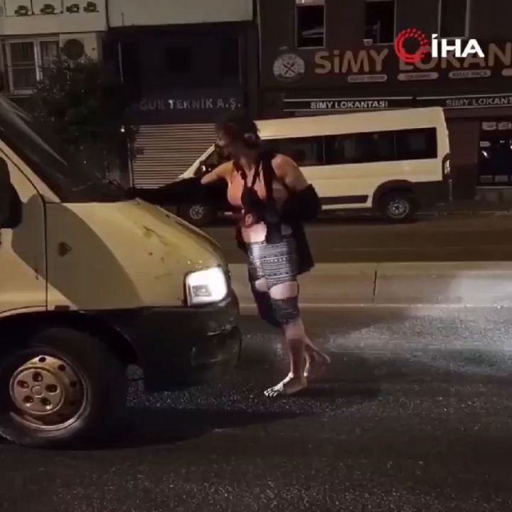 Beyoğlu'nda madde etkisinde olduğu iddia edilen bir kadın, yola atlayarak araçların önünü kesti. Araçların kaputlarına da vuran kadın, sürücülere zor anlar yaşattı.