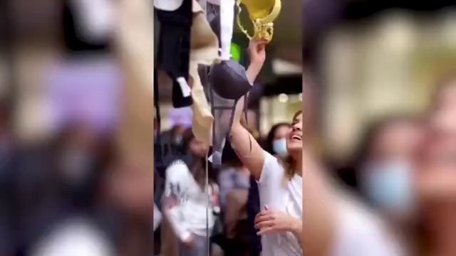Bir alışveriş merkezine koyulan şeffaf uzun kutu, kadınlar tarafından ilginç eyleme neden oldu.