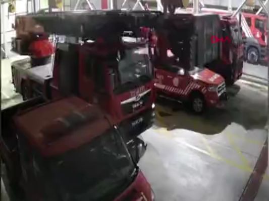 Kahramanmaraş merkezli 7.6 büyüklüğündeki ilk depremde Malatya'da, İtfaiye Daire Başkanlığı içerisinde park halinde bulunan 16 tonluk aracın sallanması güvenlik kamerasına yansıdı.