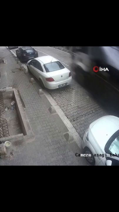 #Esenyurt'ta park halindeki bir kamyon kendine kendine hareket ederek, park halinde bulunan başka bir kamyonetin üzerine düştü.