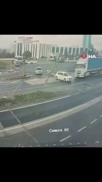 #Tekirdağ'da kırmızı ışık ihlali yapan tırın otomobil ile çarpıştığı anlar kameraya yansıdı. Ağır yaralanan otomobil sürücüsü hastaneye kaldırıldı. Tır şoförü gözaltına alındı.