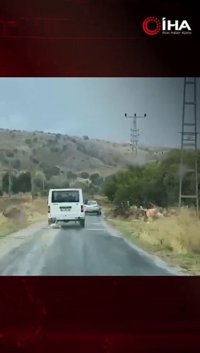Kırıkkale'nin Sulakyurt ilçesinde bir sürücü, minibüsün arkasına bağladığı köpeği kilometrelerce sürükledi.
