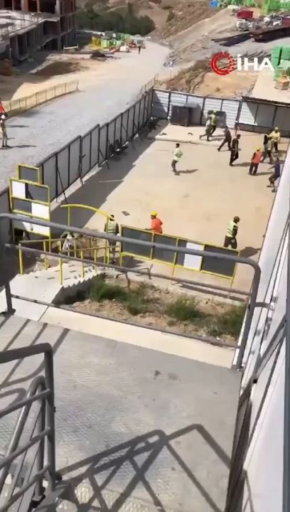 Başakşehir’de şantiyede bir grup işçi henüz bilinmeyen bir nedenle birbirine girdi. Çivilerin ve çekiçlerin havada uçuştuğu olayda çok sayıda kişi yaralanırken, kavgaya karışanlar ise gözaltına alındı. Yaşananlar bir başka işçi tarafından cep telefonu kamerasıyla kaydedildi.