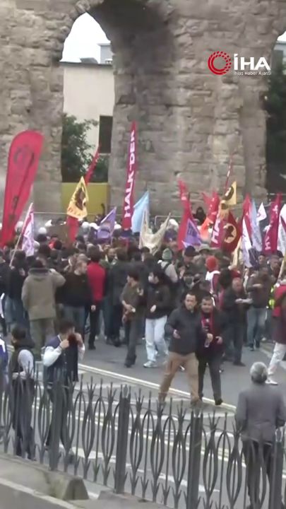#İstanbul'da 1 Mayıs Emek ve Dayanışma Günü'nde kısıtlama tedbirleri çerçevesinde Taksim'e girişler yasaklandı. Yasağa rağmen Saraçhane'de toplanan çeşitli sendika üyeleri sloganlar attı. Polis ekipleri kalabalık gruba uyarıda bulunurken, uyarıları dikkate almayan grup, ellerindeki bayrakların sopalarıyla bariyerleri aşmaya çalıştı. Polis ekipleri uyarıları dikkate almayan gruplara biber gazıyla müdahalede bulunarak, kalabalığı geri püskürttü.