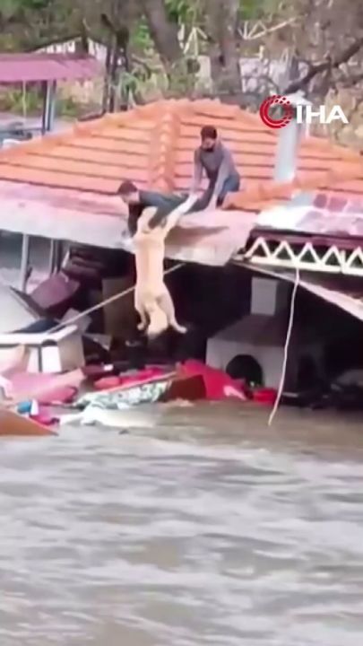 #Antalya’da Dim Çayı’nda bir işletmede sulara kapılmak üzere olan bir köpek, iki işletme çalışanının müdahalesiyle son anda kurtarıldı.