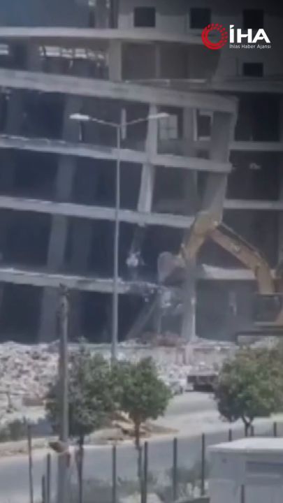 Depremin vurduğu Hatay’ın Antakya ilçesinde özel bir hastanenin yıkımı esnasında bina, çalışma yapan iş makinesinin üzerine çöktü. O anlar cep telefonu kamerasına yansıdı.